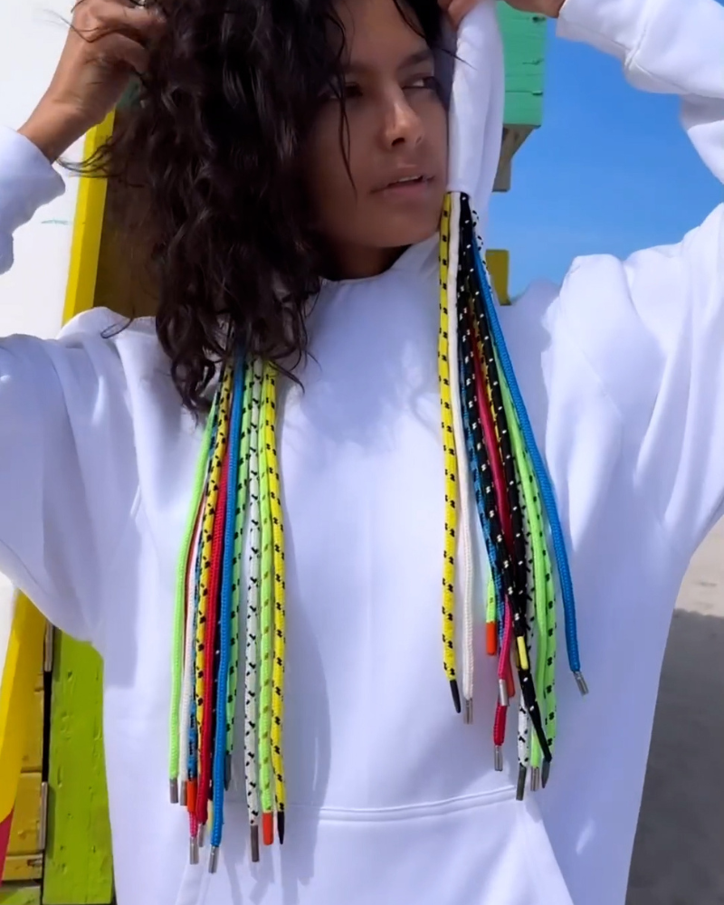 The Rabble Creator Pack is for the ultimate designer at heart. The Creator Pack contains one Rabble hoodie in your color and size of choice, plus 1 of every original Rabble drawstring – a total of 26 drawstrings. Make your hoodie your canvas with every single wear.